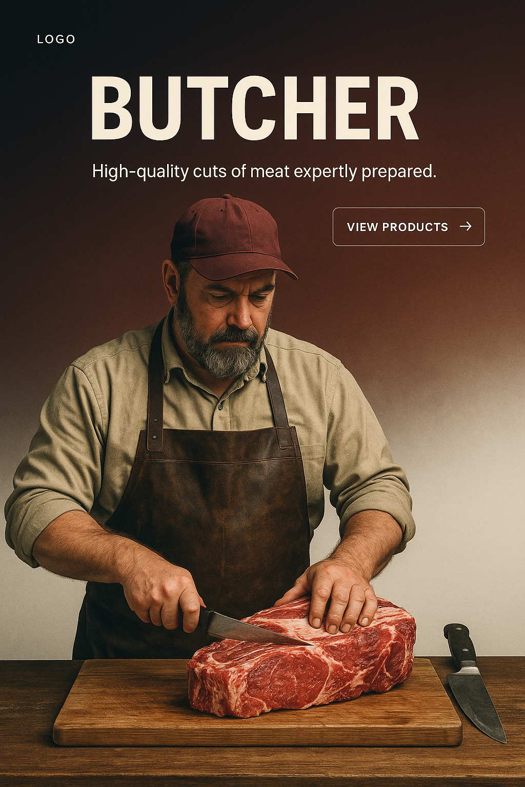 Stylish Butcher with Quality Meat Cuts in Realistic Setting