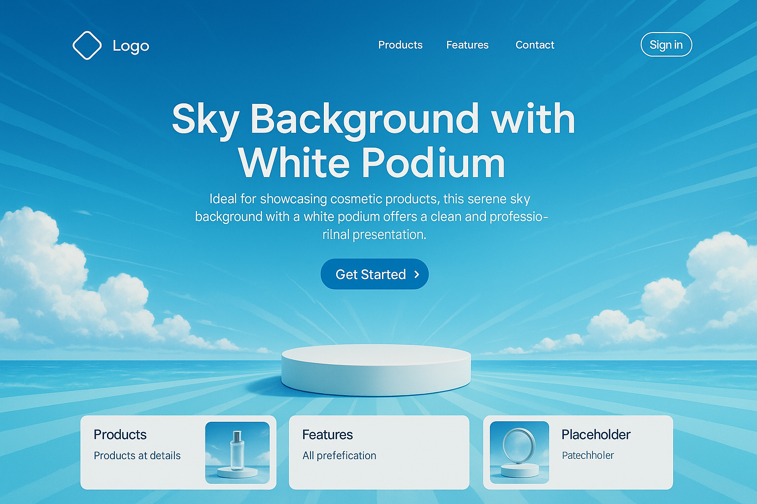 Dynamic Sky Background with White Podium for Cosmetic Presentation
