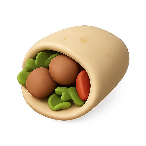 A visually appealing illustration of a burrito filled with green vegetables and meatballs, suitable for food-related content and culinary promotions.