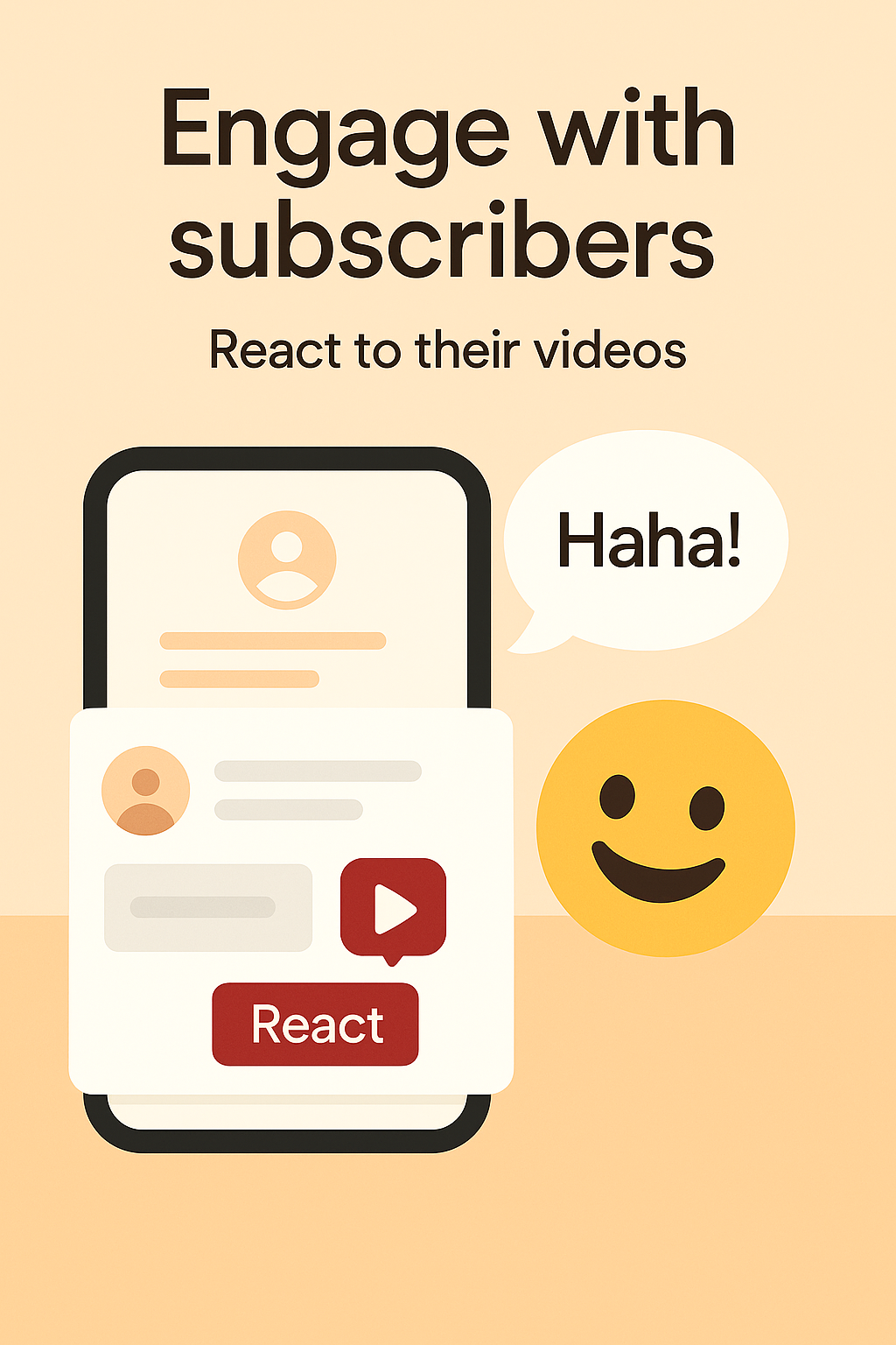 Informative graphic illustrating engagement strategies with subscribers through video reactions. Features a mobile interface and playful design elements.