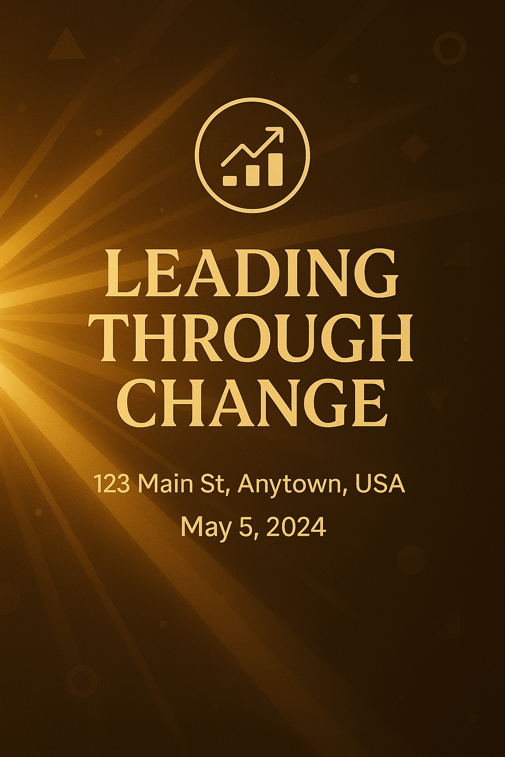 Business Seminar Promotional Graphic Featuring Speaker and Chart