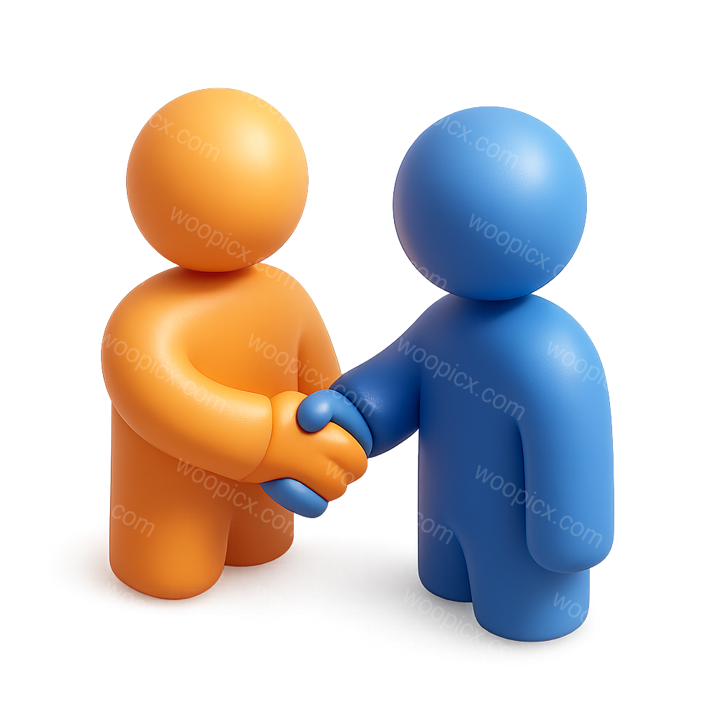 /Premium/Collection: /by davooda/Type: PNG/This image features two stylized 3D figures, one orange and one blue, engaged in a handshake. The figures are depicted in a three-quarter view with a smooth, volumetric texture, set against a gradient background.