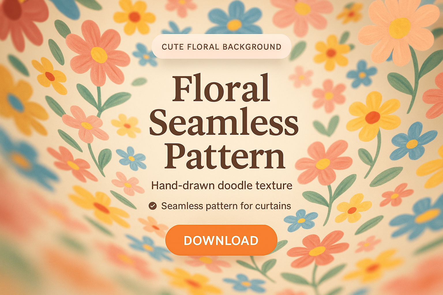 A whimsical floral seamless pattern featuring hand-drawn doodles in soft pastel colors, ideal for textile design or home decor applications.