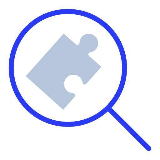 polish-blue simple icon: puzzle, piece, search, find, magnifying glass