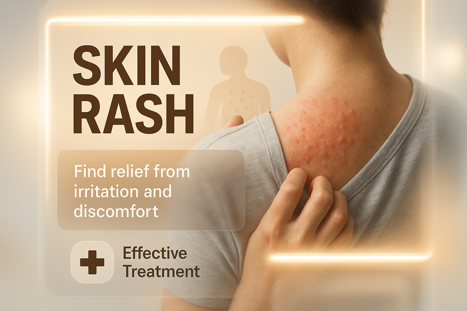Informative promotional graphic highlighting effective treatments for skin rash, designed with a modern aesthetic and health-focused imagery. Ideal for medical or wellness marketing.