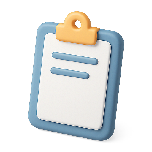 Stylized 3D illustration of a clipboard featuring a clean and modern design. Perfect for digital applications, representing tasks, notes, or checklists.