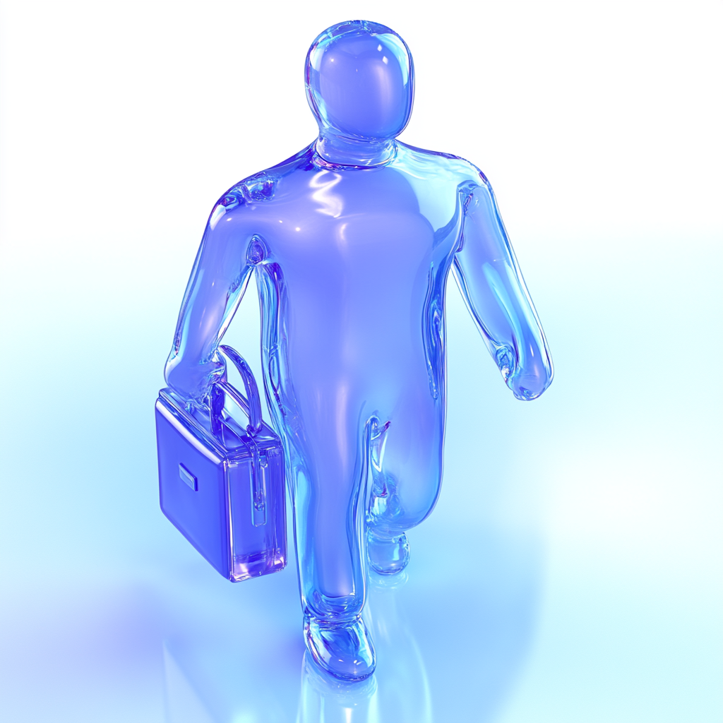 Stylized Glass Figure of a Businessman Carrying a Briefcase