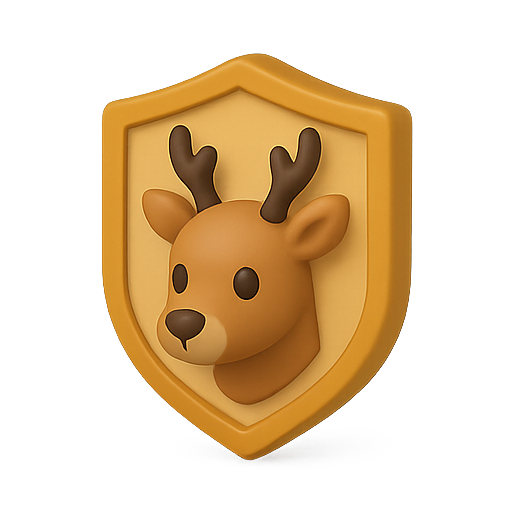 A stylized 3D icon featuring a deer head on a shield background, designed with smooth curves and vibrant colors, suitable for use in gaming or nature-related applications.