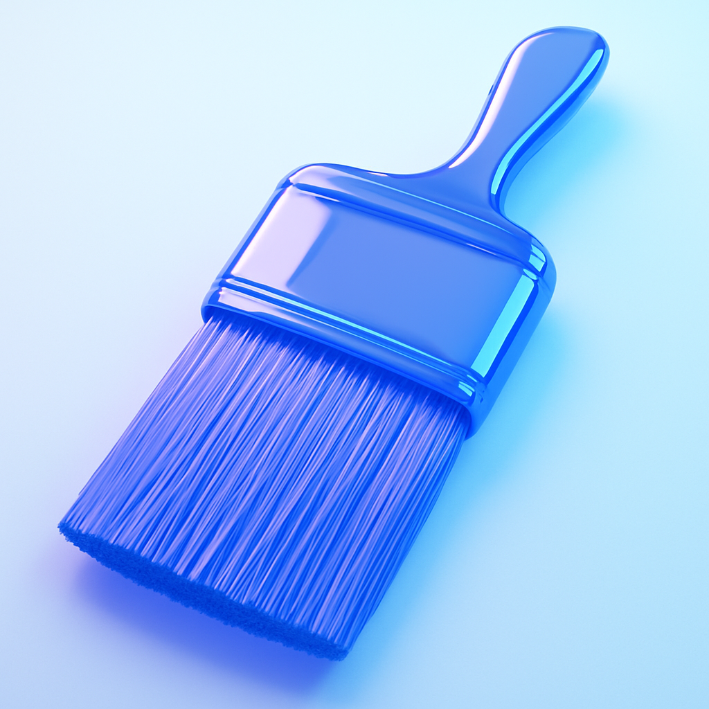 A modern 3D representation of a paintbrush, featuring a glossy blue finish. Ideal for design projects related to art, painting, or DIY themes.