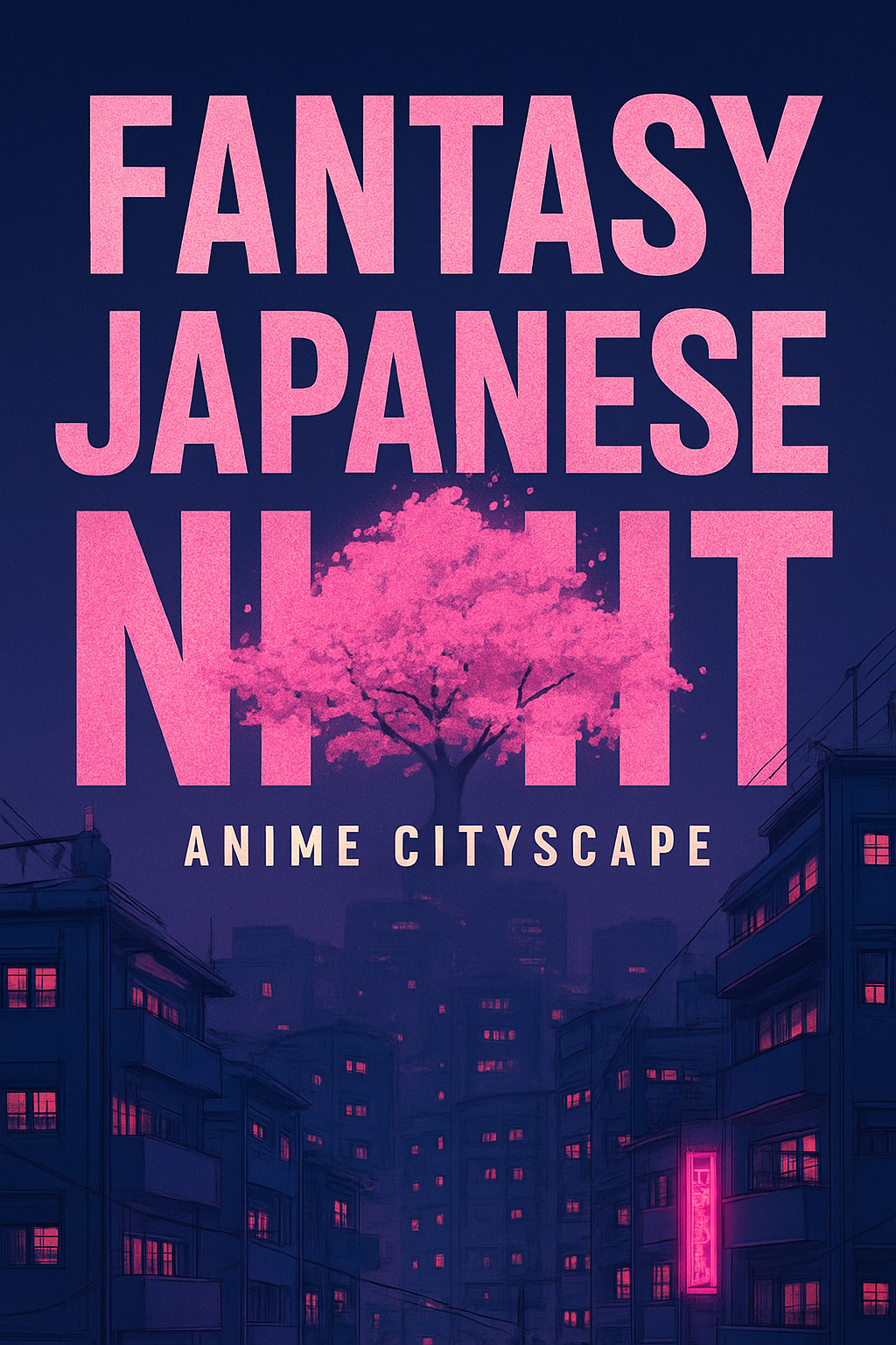 /Collection: /by davooda/Type: PNG/A visually striking digital artwork depicting a fantasy Japanese cityscape at night. The use of bold typography and vibrant colors creates an engaging atmosphere, making it ideal for promoting anime-themed content.