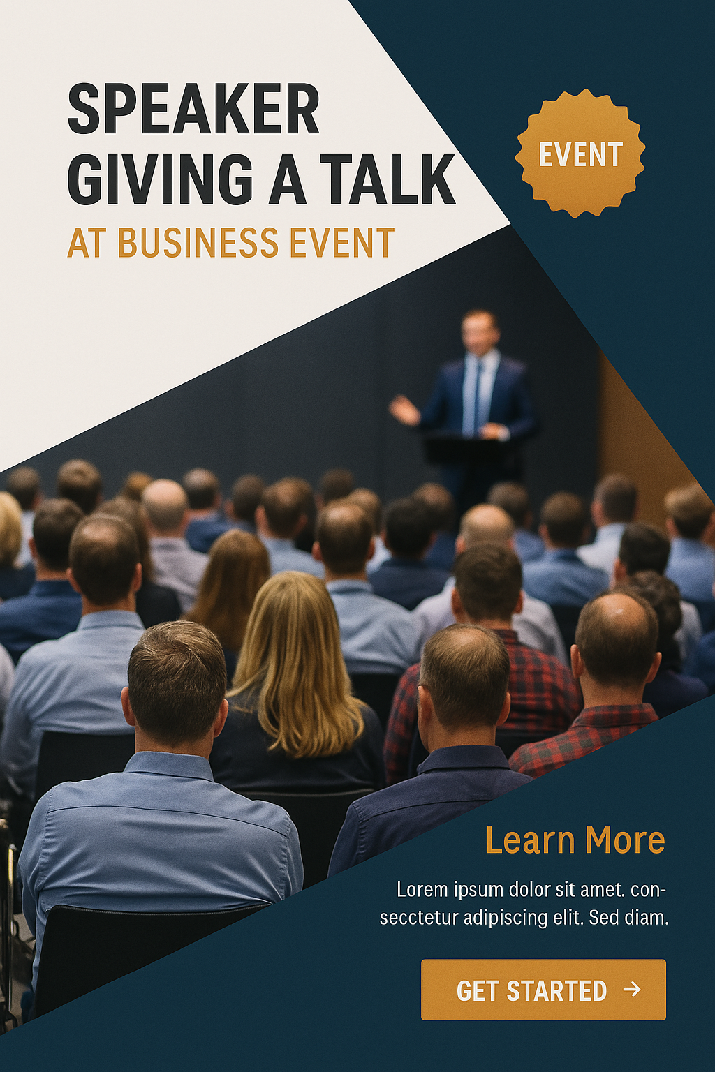 /Collection: /by davooda/Type: PNG/A rear view of an audience in a conference hall, attentively listening to a speaker presenting a business topic. The image features a professional and engaging atmosphere.