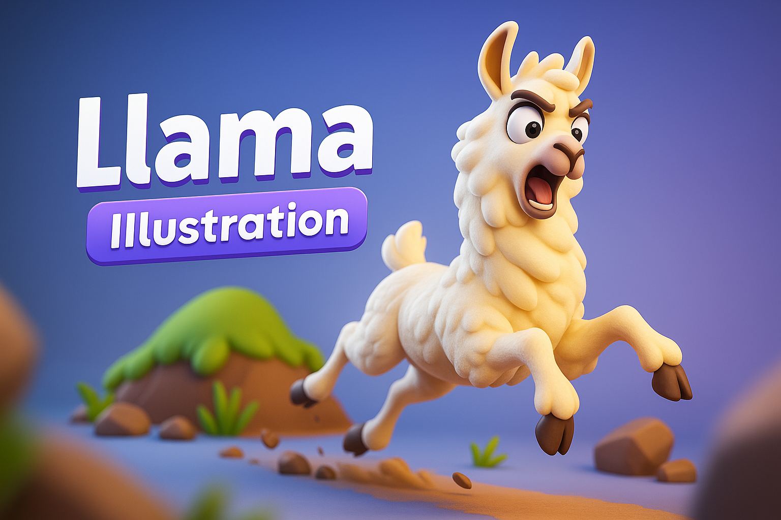 Dynamic 3D Illustration of an Alpaca with Engaging Text