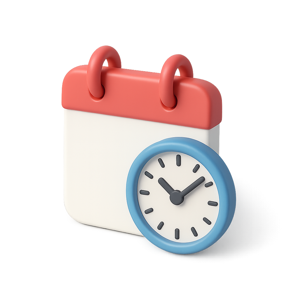 Stylish 3D Time Icon Featuring Calendar and Clock