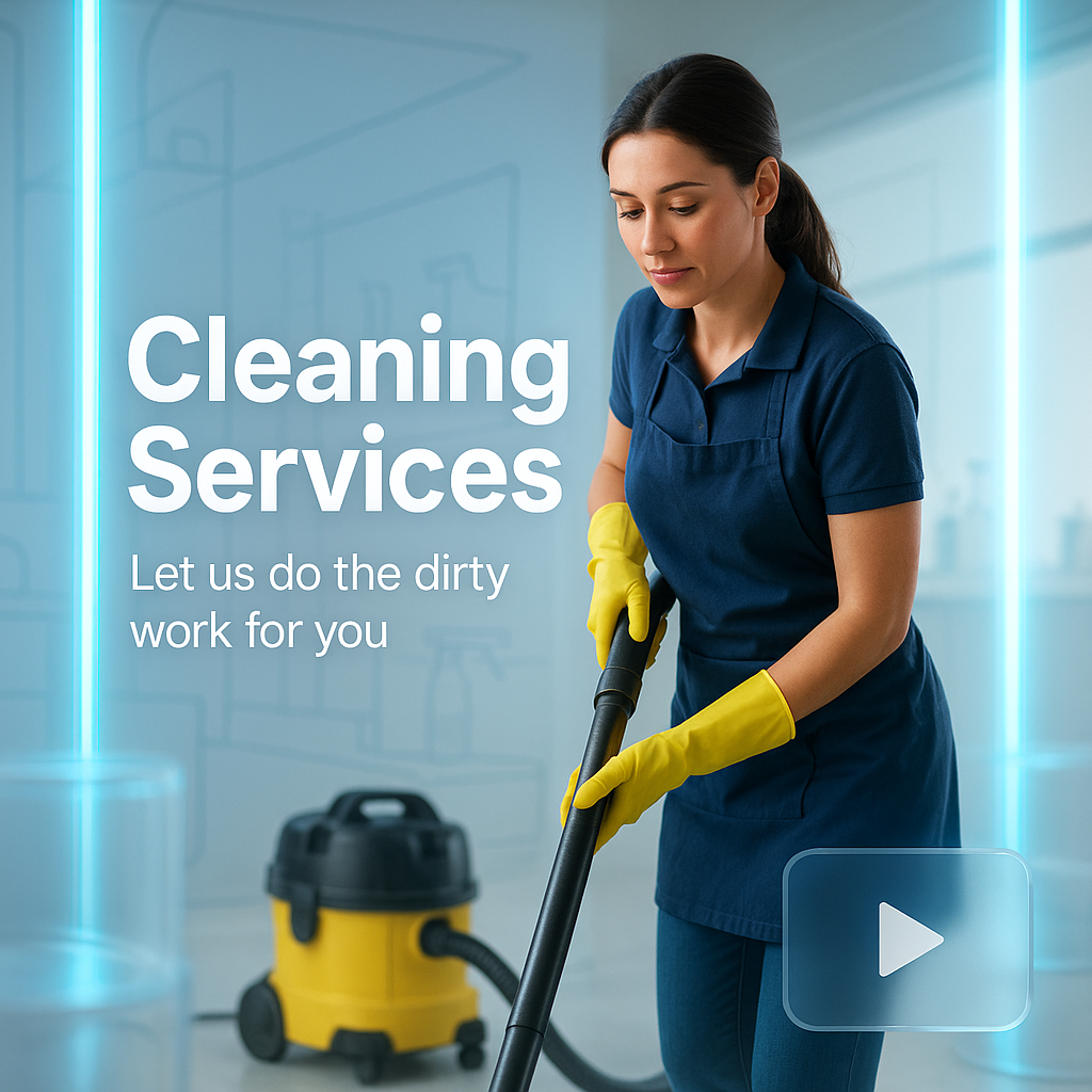 Promotional image for cleaning services featuring a professional in action with modern design elements, ideal for marketing and service advertisements.