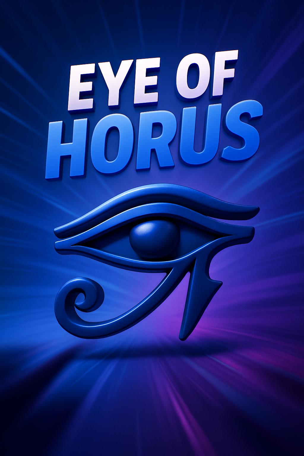 This graphic features the Eye of Horus symbol against a dynamic blue background, conveying a sense of mystery and power. Ideal for cultural or historical themes.