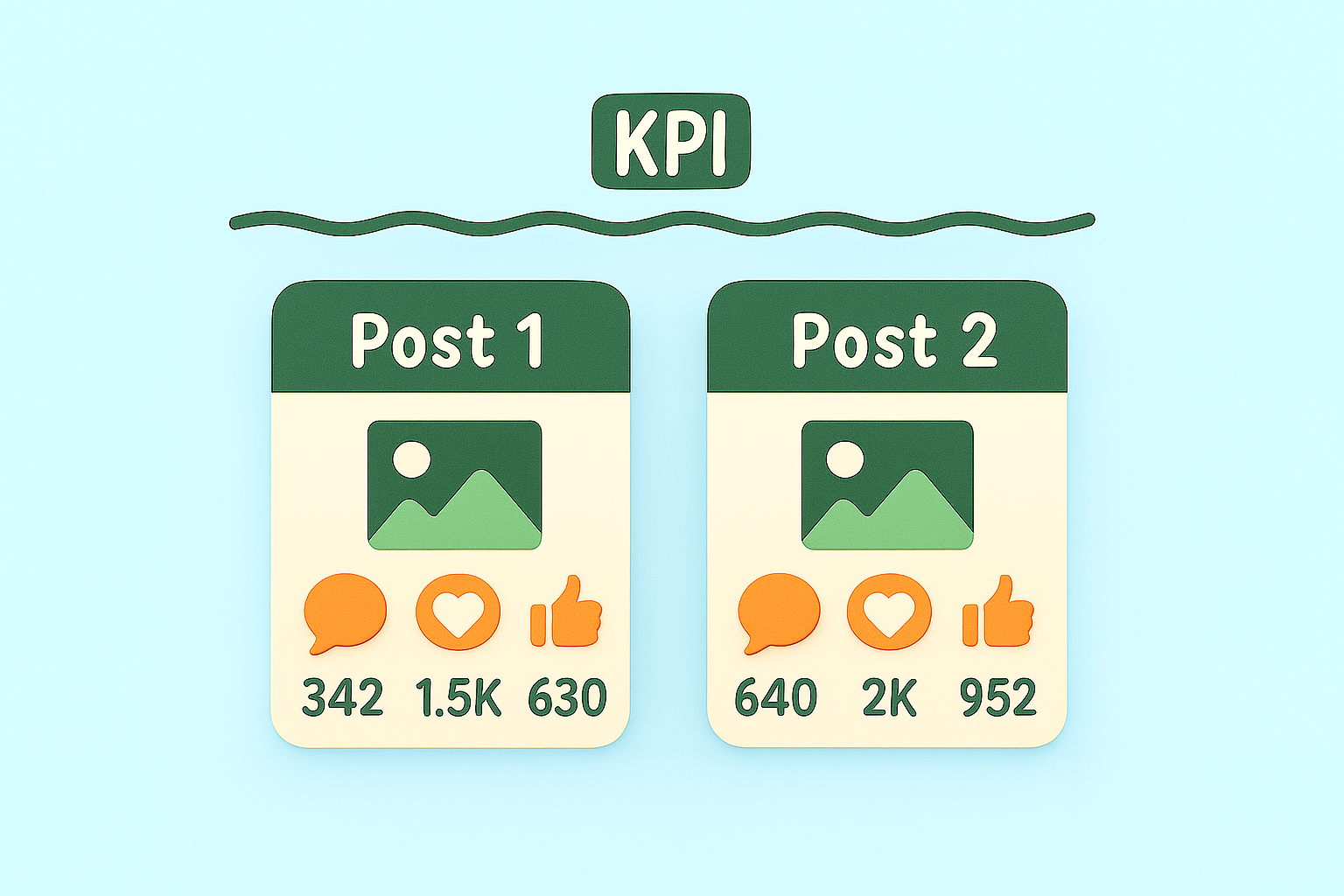 /Collection: /by davooda/Type: PNG/Informative infographic comparing key performance indicators (KPIs) of two social media posts. The design features a clean layout with icons representing engagement metrics, suitable for marketing analysis.
