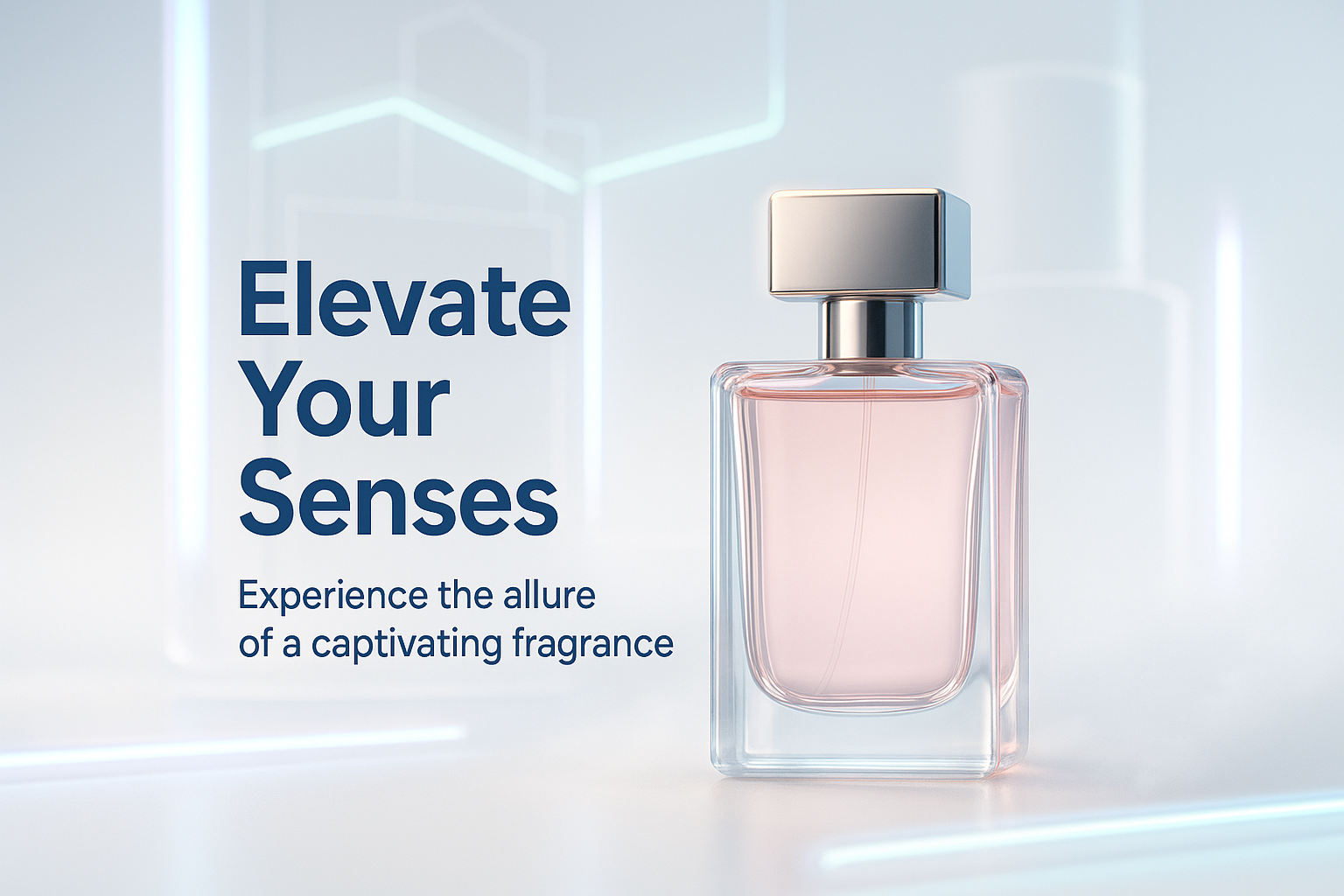 Elegant Fragrance Advertisement Featuring Modern Perfume Bottle
