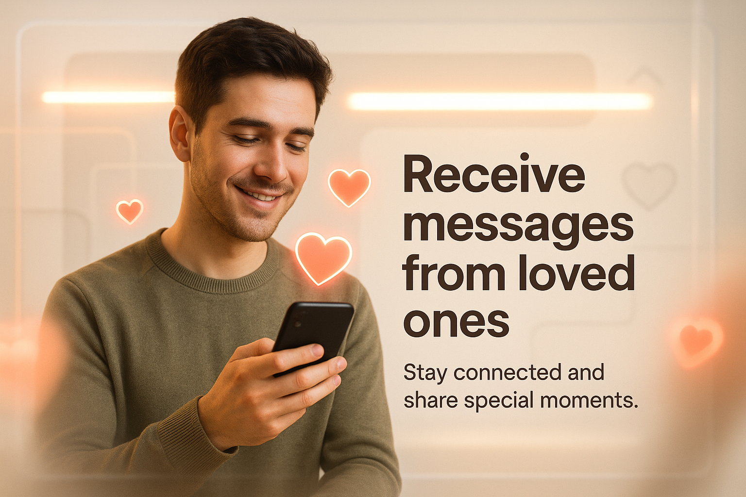 Social media post highlighting the importance of staying connected with loved ones through digital communication. The warm, inviting design evokes feelings of connection and intimacy.