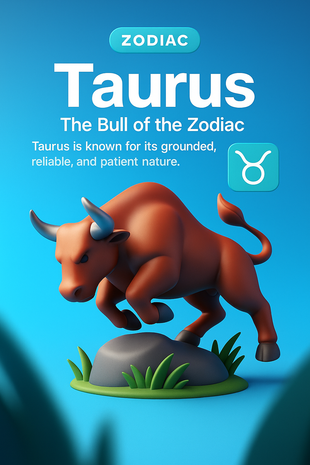 A vibrant 3D illustration of Taurus, the Bull of the Zodiac, set against a smooth gradient background. The text is clear and balanced, adhering to design guidelines.