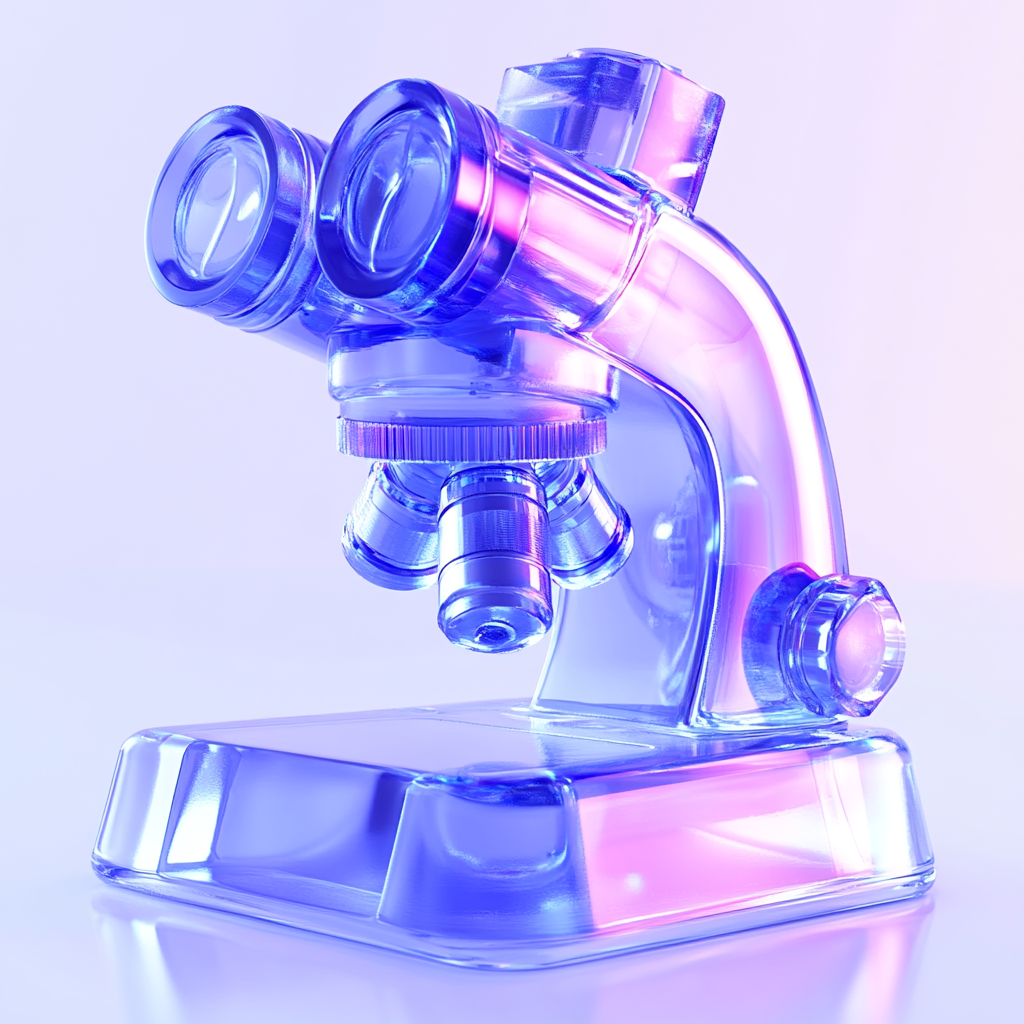 A modern, stylized 3D illustration of a microscope featuring vibrant purple and blue hues, suitable for educational and scientific themes in digital media.