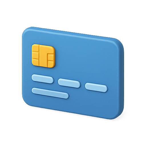 A stylized 3D representation of a credit card featuring a prominent chip design, suitable for financial services and digital banking applications.