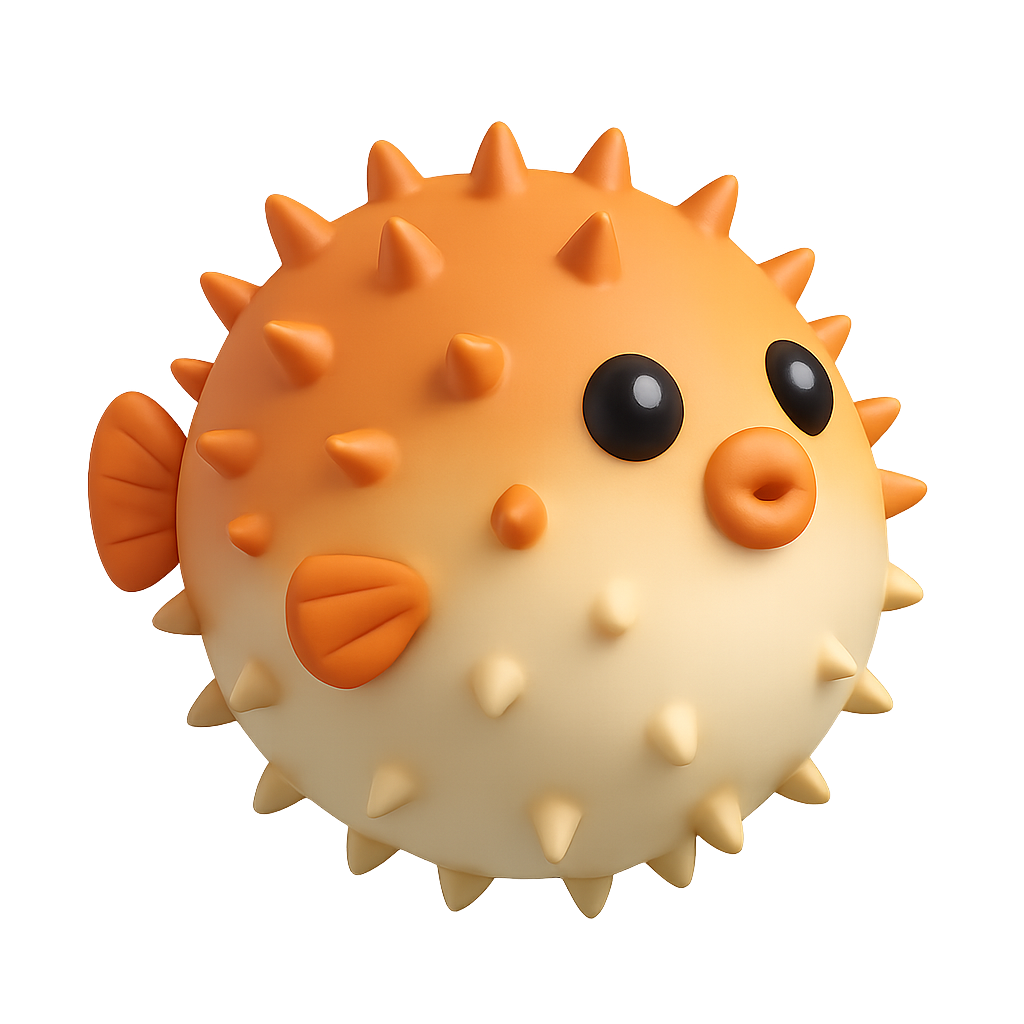 Stylized 3D Blowfish Icon with Spikes and Bright Colors
