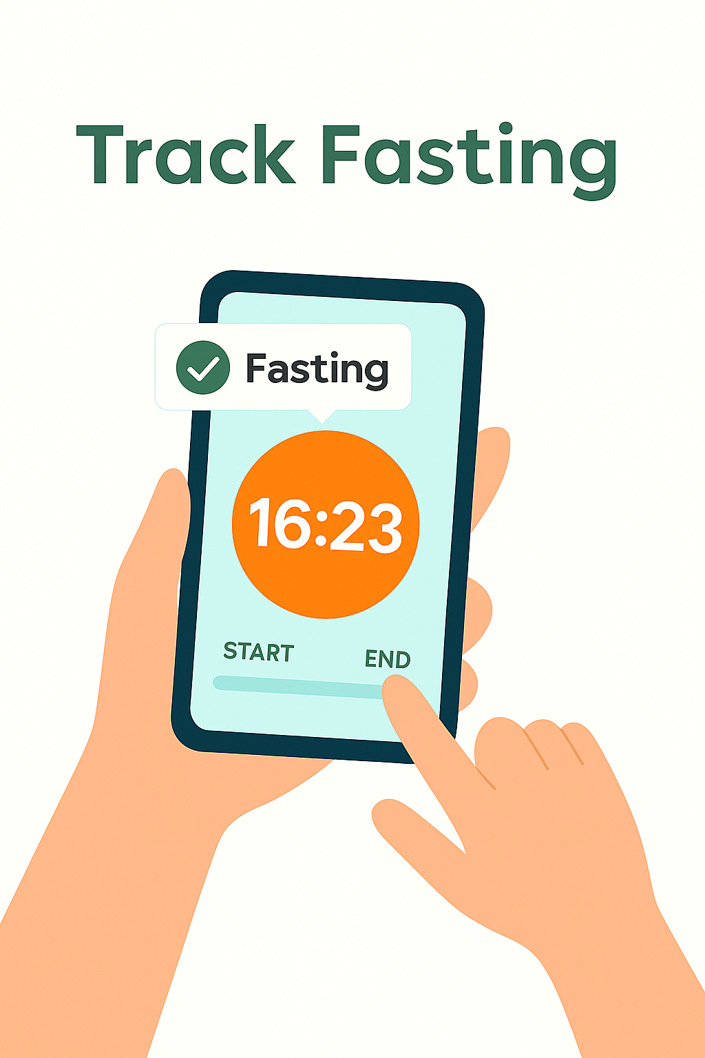 Illustration of a mobile app interface designed for tracking fasting periods, featuring a user-friendly design and vibrant colors to engage health-conscious users.