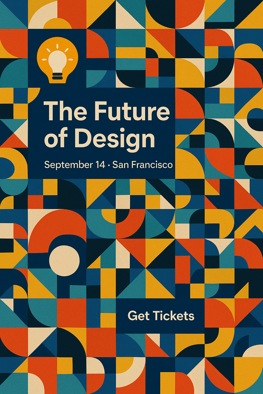 Vibrant graphic poster for a design conference featuring geometric patterns and a modern typography style, ideal for event promotion.