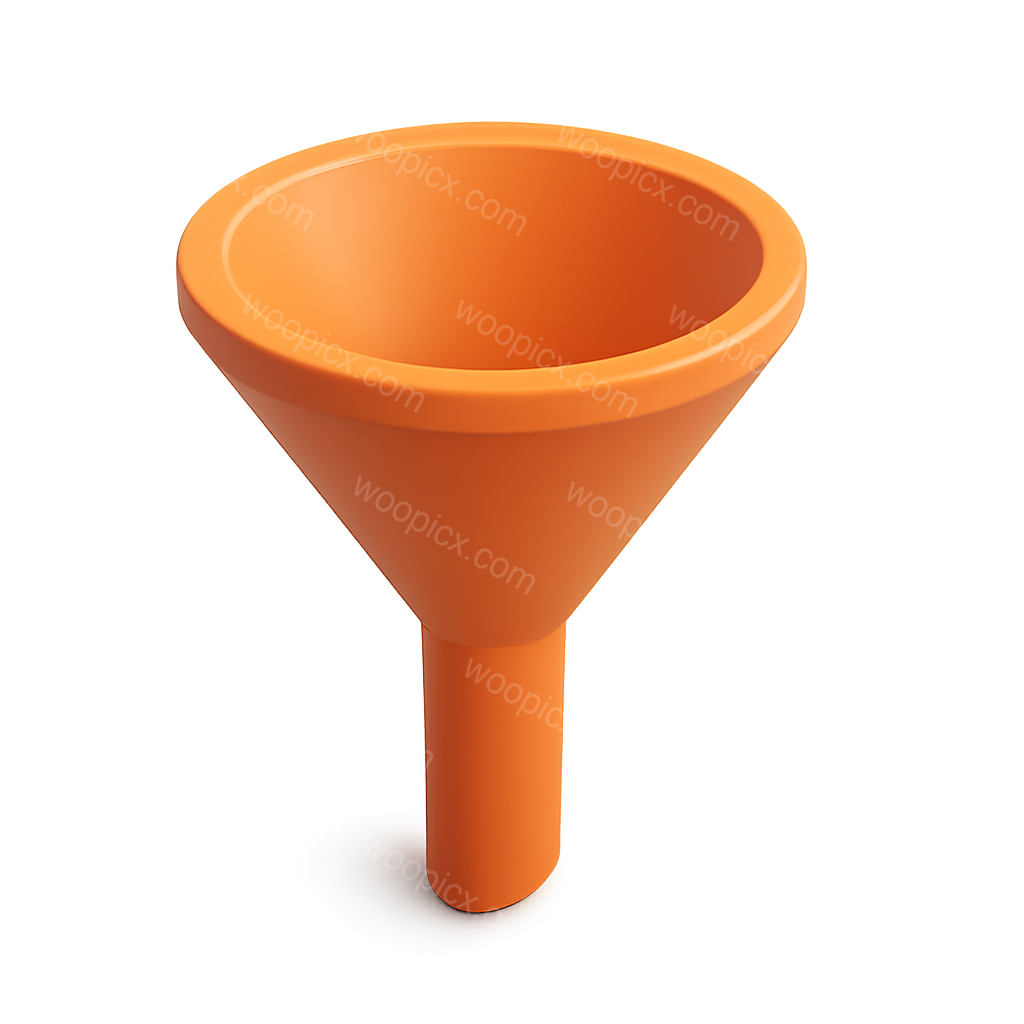/Premium/Collection: /by davooda/Type: PNG/A vibrant 3D icon of a funnel, featuring a wide opening and a sleek design. The funnel is orange and presented in a three-quarter view, showcasing its isometric and volumetric properties against a subtle gradient background.