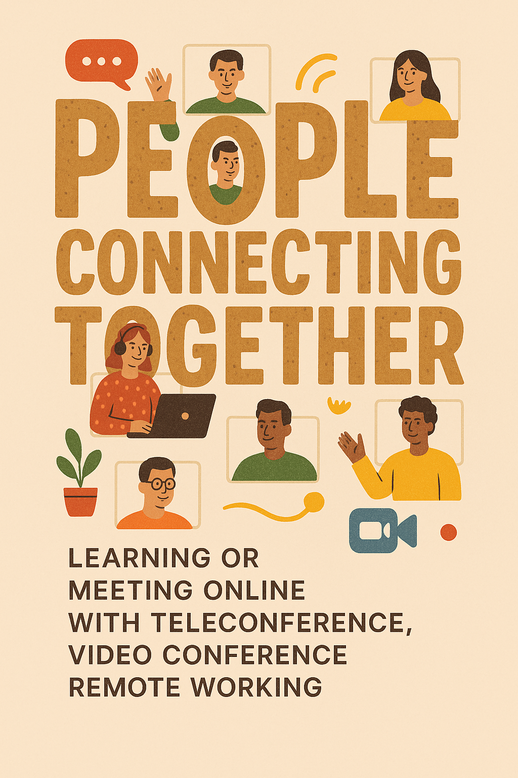 /Collection: /by davooda/Type: PNG/Vibrant graphic illustrating people connecting through video conferencing, emphasizing themes of remote work and online meetings. Perfect for digital communication and telecommuting contexts.