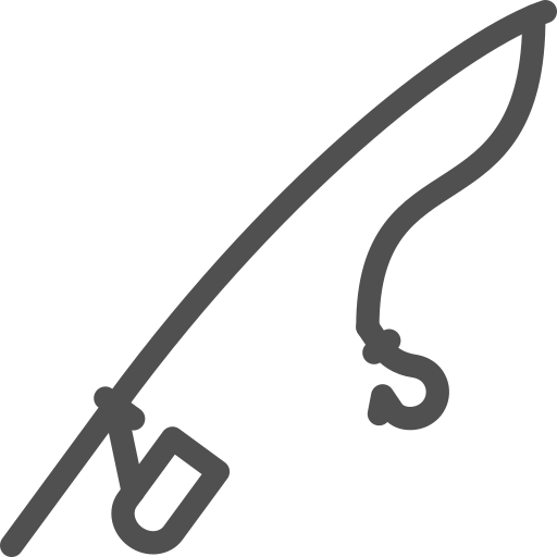 outline simple icon: angling, bait, casting, fish, fishing
