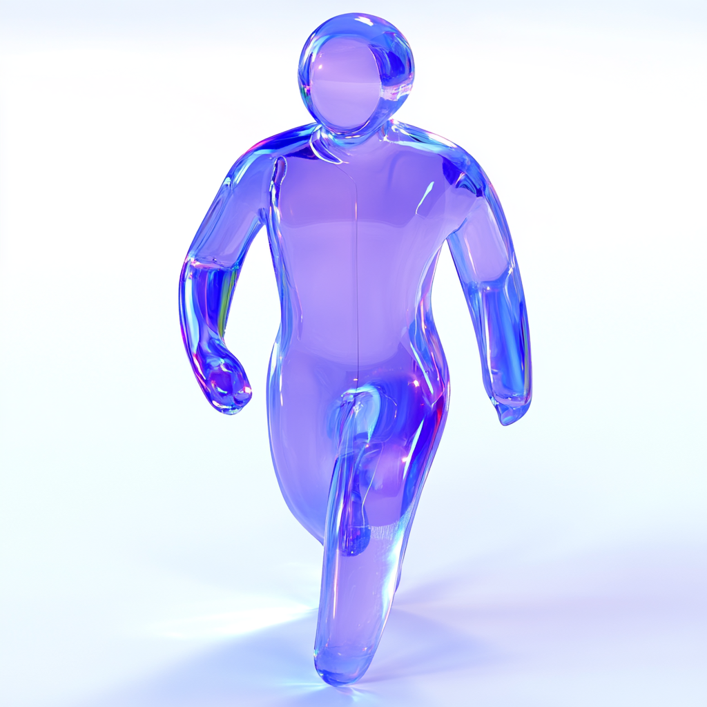 /Collection: /by davooda/Type: PNG/A visually striking 3D render of a transparent figure in motion, showcasing a blend of blue and purple hues. Ideal for representing concepts of fitness, movement, or abstract design.
