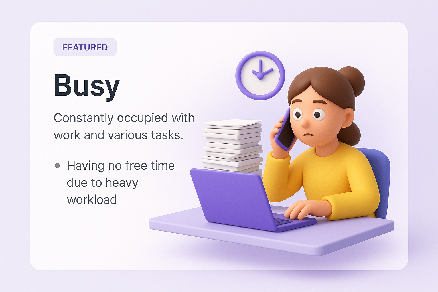 /Collection: /by davooda/Type: PNG/A bright 3D illustration showing a busy individual on a laptop, surrounded by paperwork. The design features a clock, emphasizing a heavy workload and lack of free time.