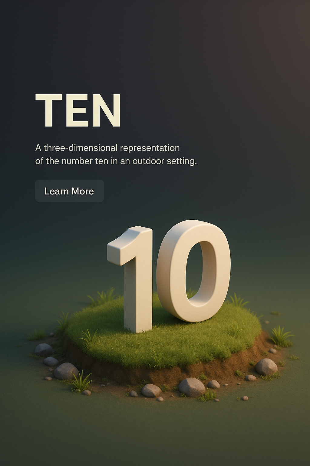 A visually appealing 3D representation of the number ten surrounded by a natural setting, featuring grass and stones. The design emphasizes realism with a smooth gradient background.