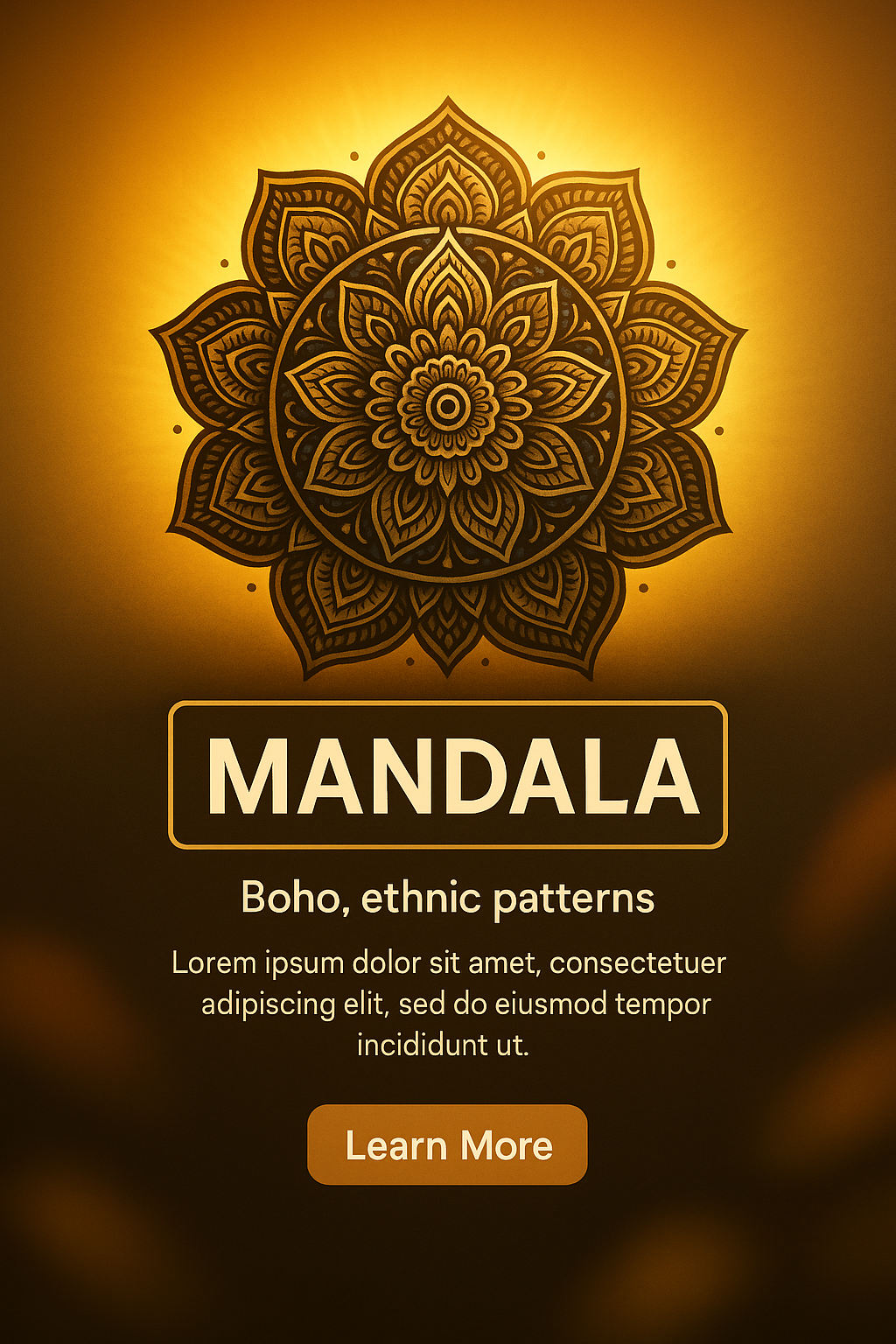 This image features a beautifully designed mandala on a gradient background, ideal for promoting bohemian and ethnic patterns. It's suitable for social media posts or website banners.