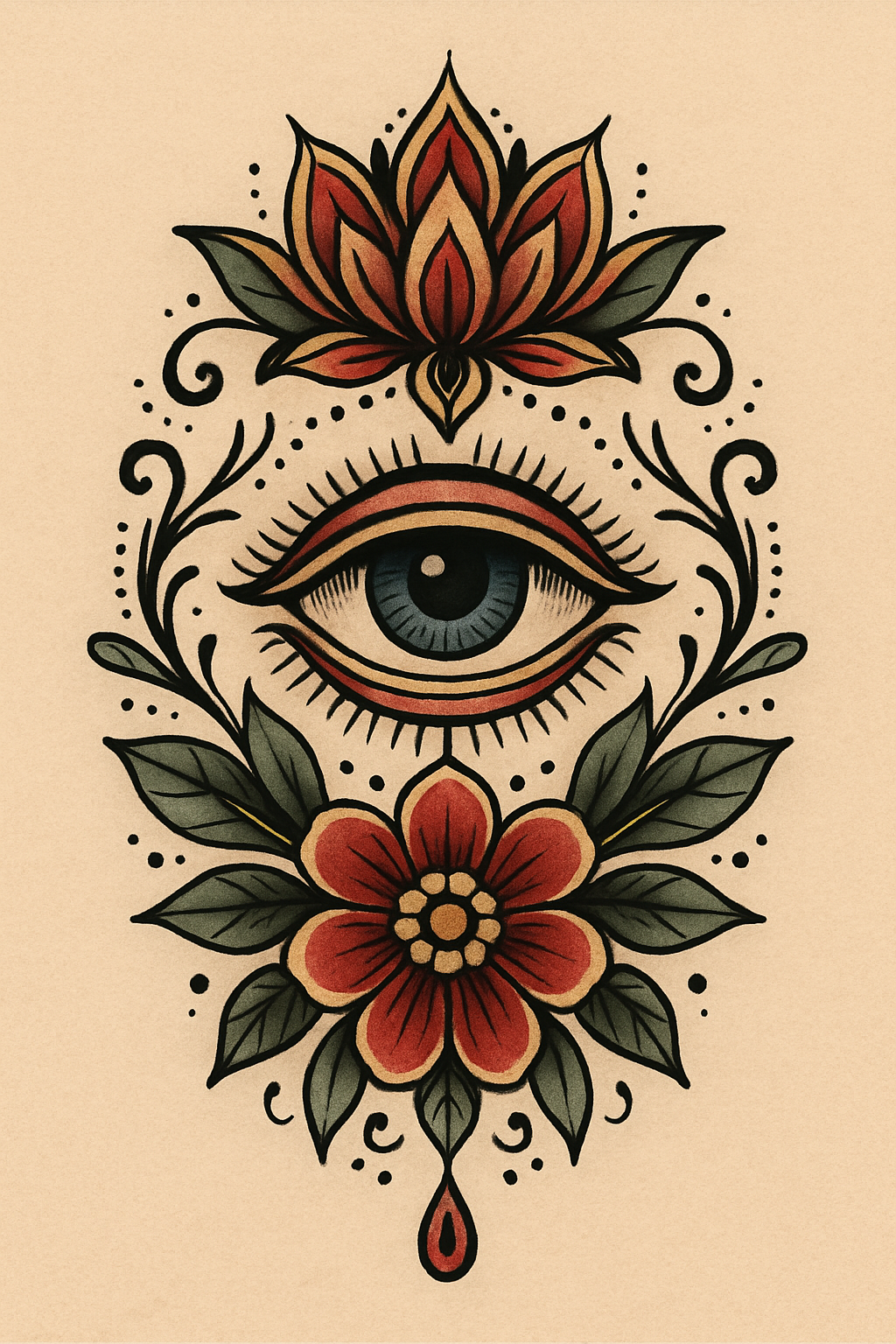 Intricate Eye and Floral Tattoo Design Illustration