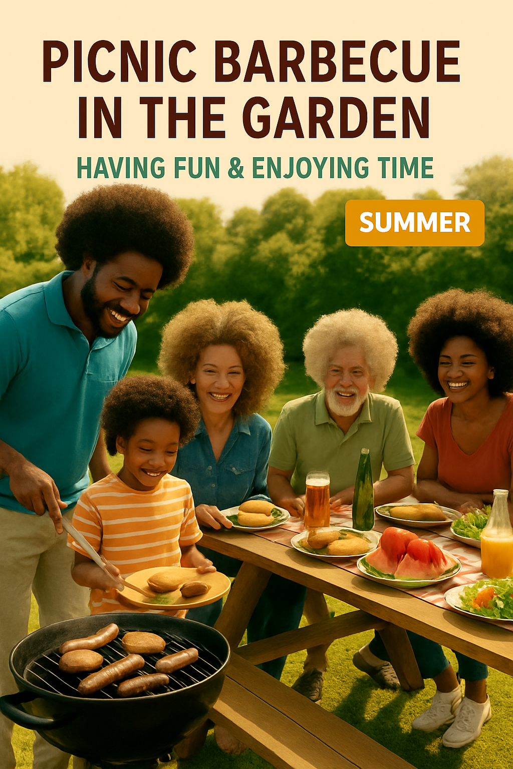 /Collection: /by Sergey Leonov/Type: PNG/A vibrant outdoor barbecue scene showcasing a family enjoying a summer picnic. The cheerful atmosphere highlights joy and togetherness, ideal for social media or promotional content.