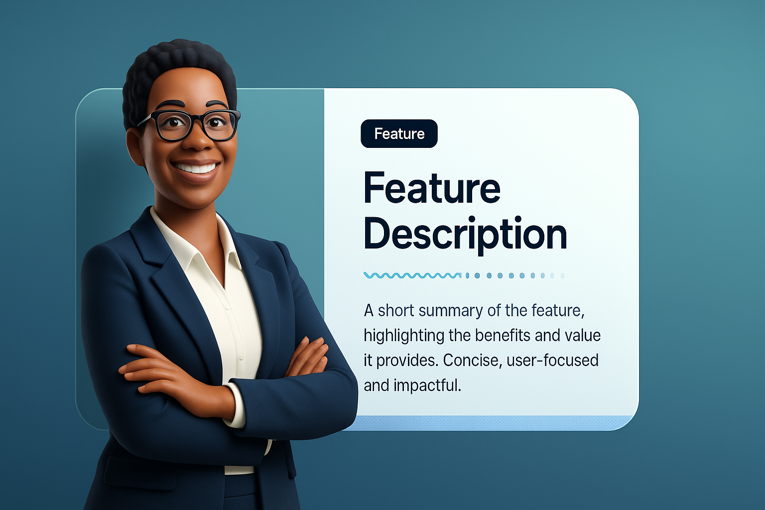 /Collection: /by davooda/Type: PNG/A smiling, middle-aged Black woman CEO wearing glasses stands confidently in an office. She has her arms crossed, exuding professionalism and pride, set against a smooth gradient background.