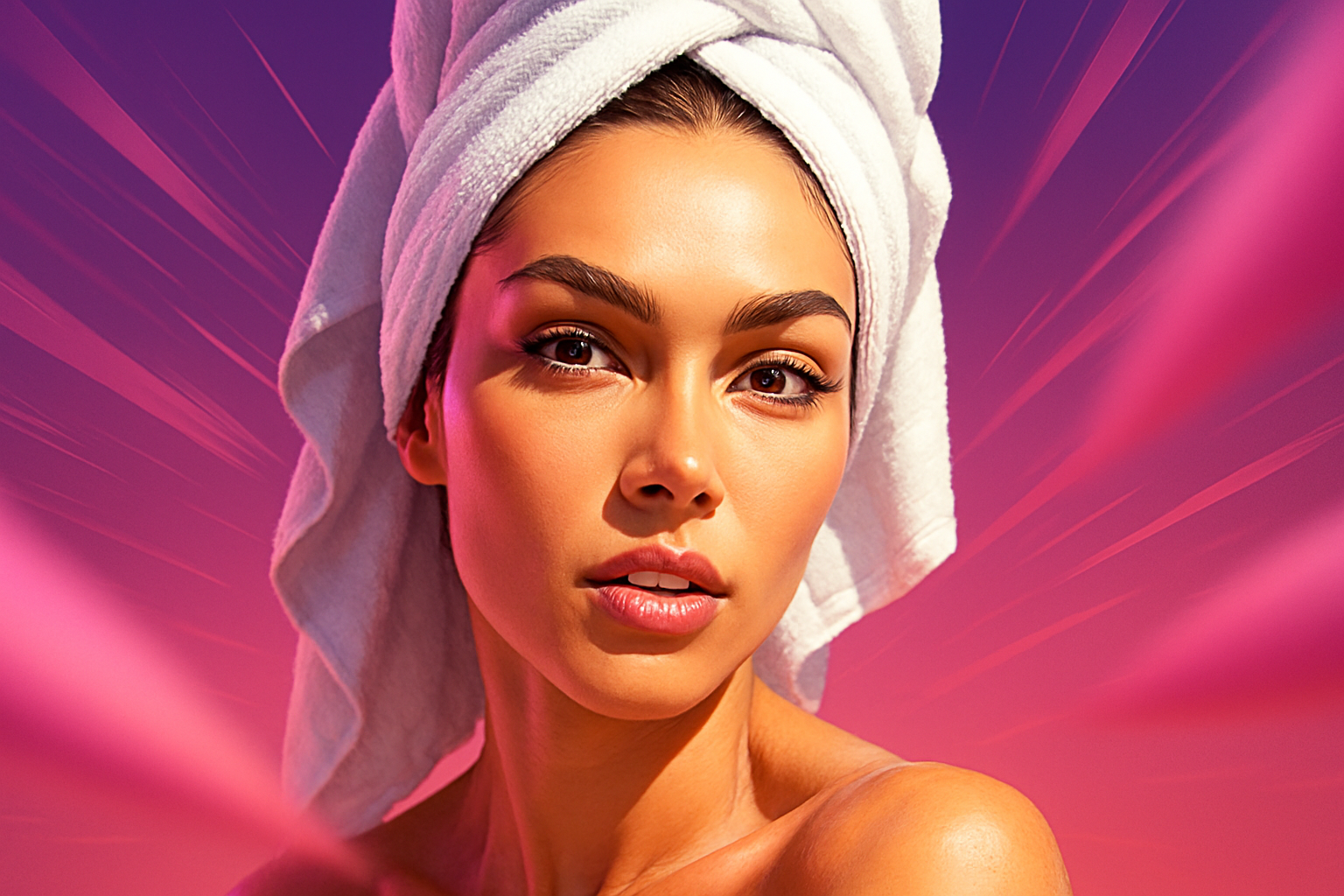 Dynamic Beauty of a Woman with Towel in Vivid Colors