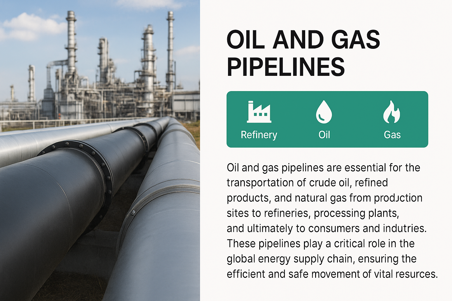 An educational infographic illustrating the importance of oil and gas pipelines in the energy sector, featuring clean design and informative elements suitable for industry presentations.