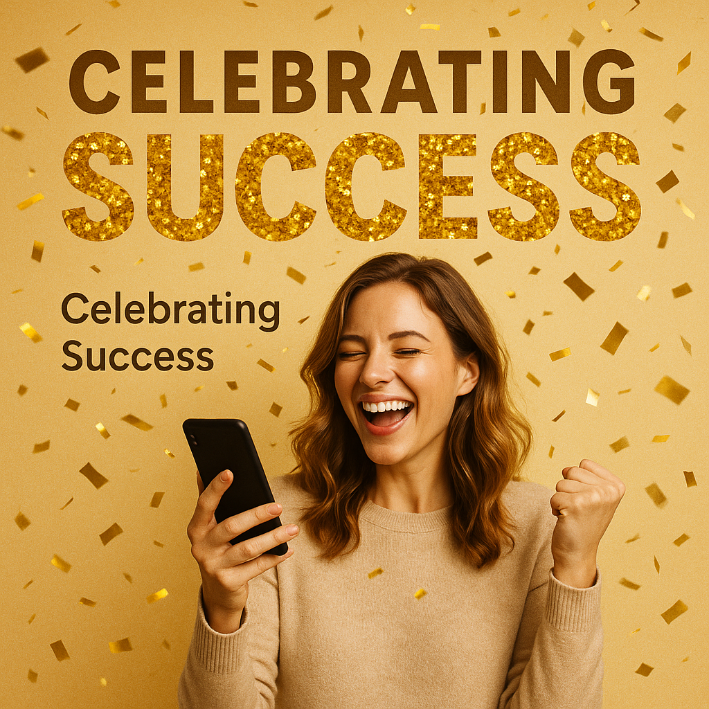 Vibrant social media post featuring a joyful woman celebrating success with confetti and a cheerful expression, perfect for motivational or inspirational content.