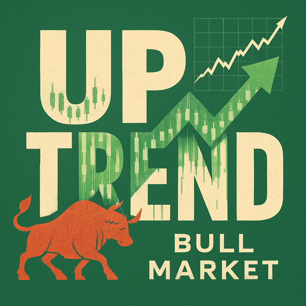 Bull Market Graphic with Trend Indicators and Bold Typography