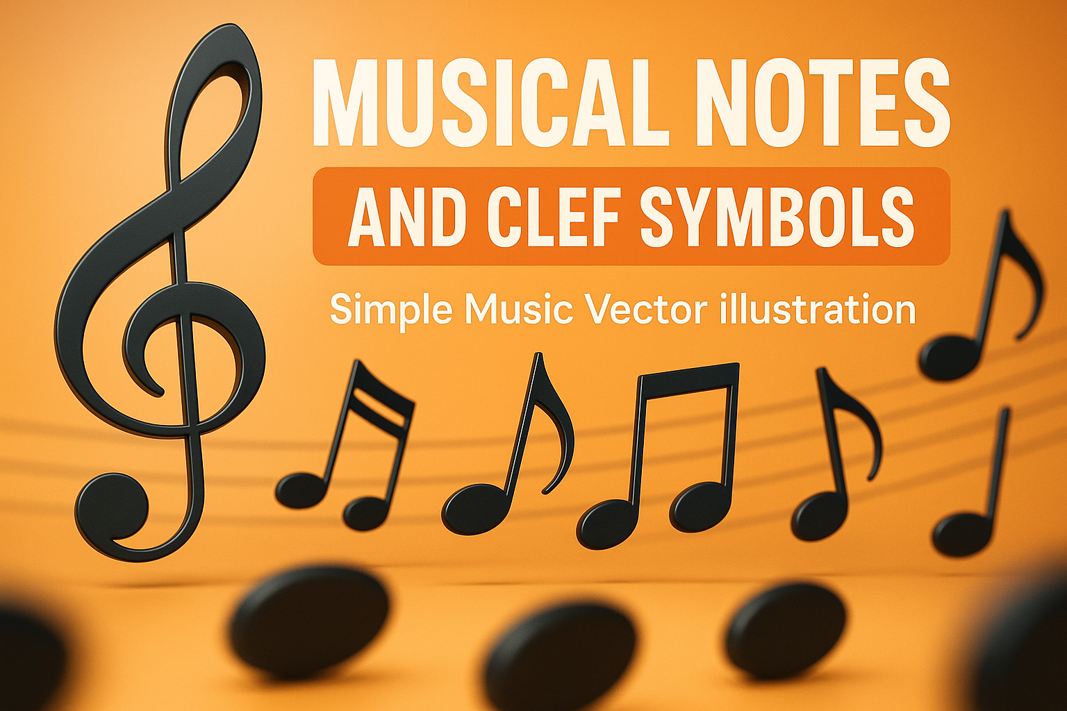 A vibrant vector illustration featuring musical notes and clef symbols against an orange background, ideal for music-related projects and promotions.