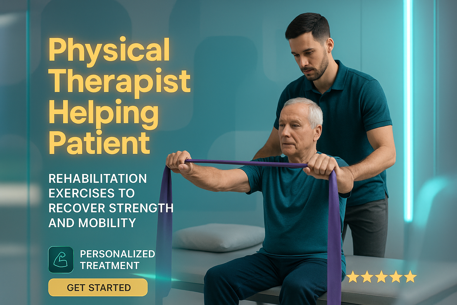 Physical Therapy Assistance Image Featuring Patient and Therapist