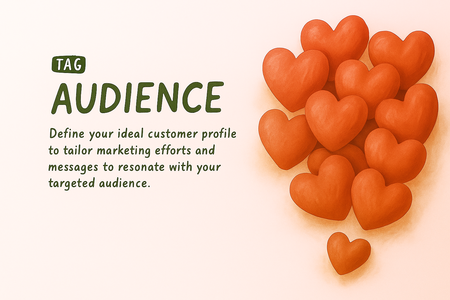 /Collection: /by davooda/Type: PNG/A visually appealing graphic featuring hearts to symbolize audience targeting in marketing. The design is simple yet effective for conveying the importance of understanding customer profiles.