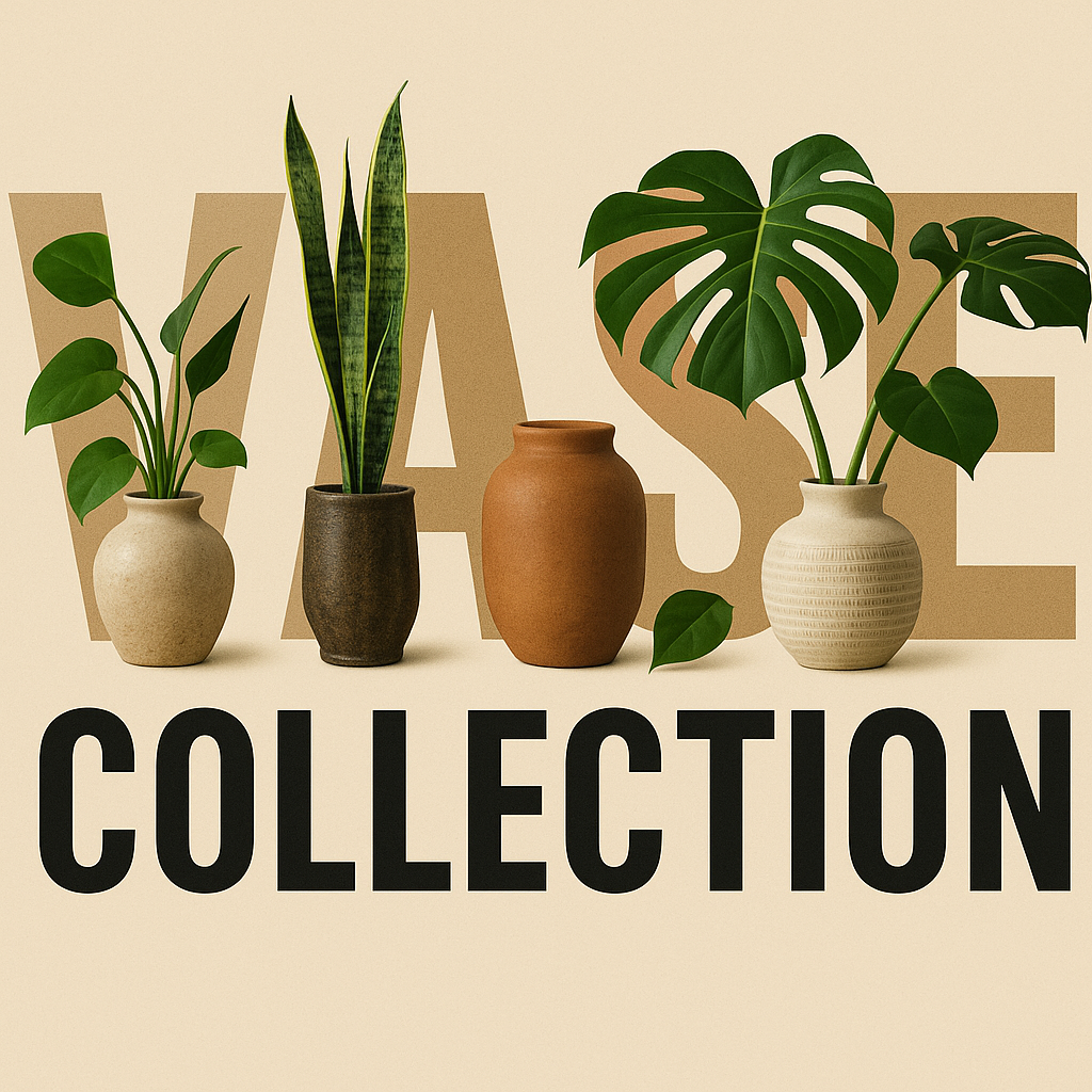 /Collection: /by davooda/Type: PNG/A visually appealing graphic showcasing a collection of vases with plants, designed in a contemporary style. Ideal for home decor marketing and lifestyle branding.