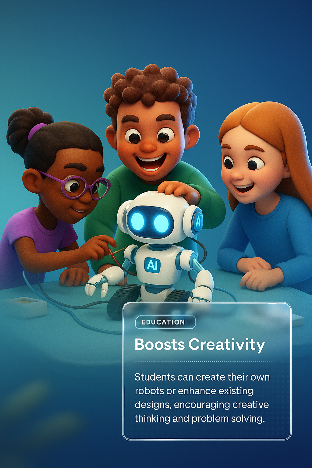 /Collection: /by davooda/Type: PNG/A group of diverse children engages in a technology project, working on a small robot with AI features. They are focused and enthusiastic, showcasing creativity in robotics.