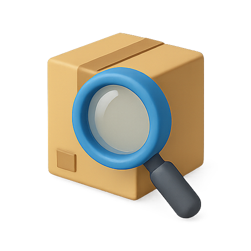 /Collection: /by davooda/Type: PNG/A digital illustration featuring a magnifying glass over a cardboard box, ideal for use in logistics, shipping, or e-commerce contexts. The design is simple yet effective, conveying themes of inspection and delivery.