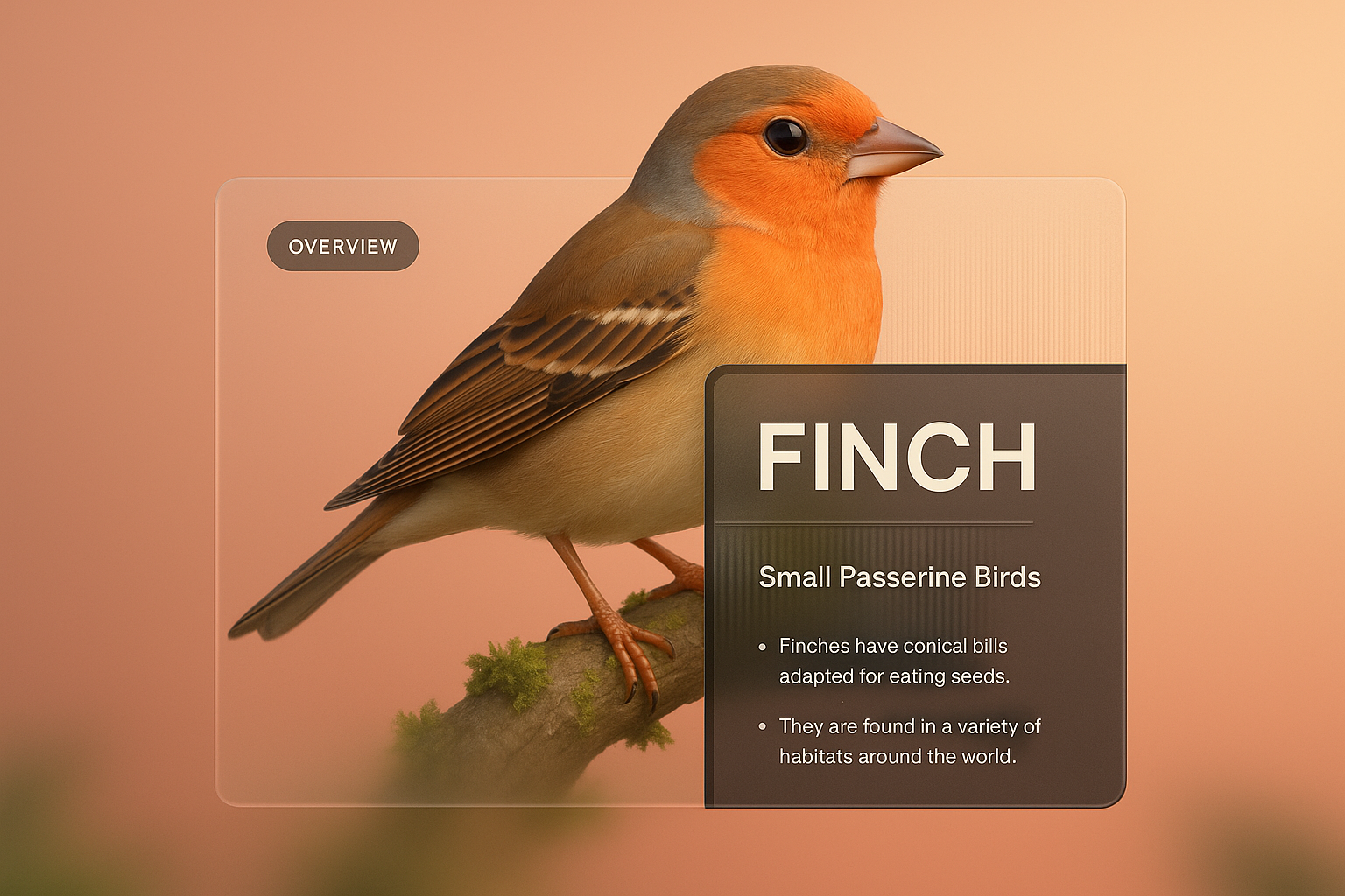 /Collection: /by davooda/Type: PNG/A beautifully designed web page layout featuring a 3D illustration of a finch. The layout includes text blocks, labels, and a gradient background, integrating elements seamlessly.