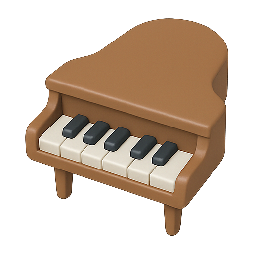 A cute, cartoonish representation of a mini piano featuring five black and white keys, ideal for music-themed designs and digital communication.